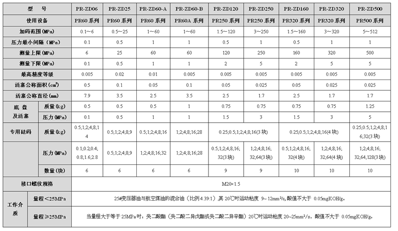 PR120/250系列活塞壓力計(jì) 符合最新檢定規(guī)程JJG59-2007要求研制、生產(chǎn)。