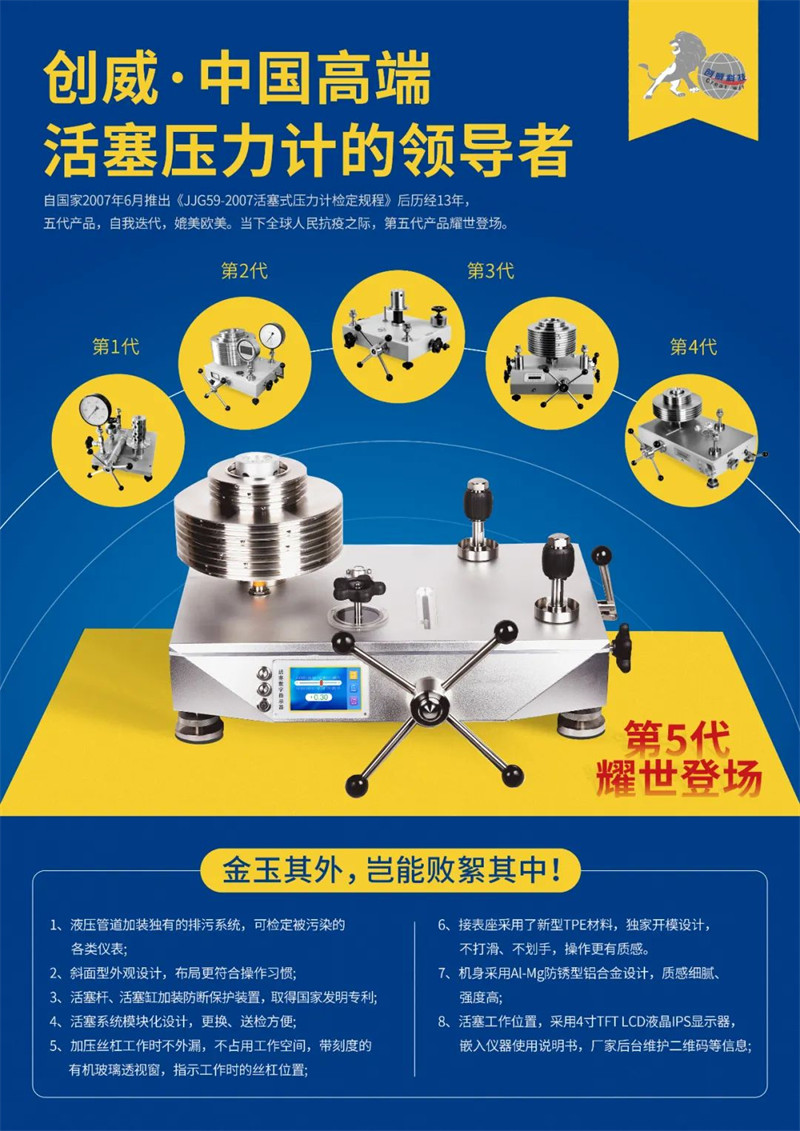 在中國(guó)計(jì)量大學(xué)還叫做中國(guó)計(jì)量學(xué)院的2013年,創(chuàng)威的產(chǎn)品就已經(jīng)進(jìn)駐了該校的實(shí)驗(yàn)室。時(shí)隔8年,貴校再次購(gòu)入我司0.005液體活塞式壓力計(jì)及氣體活塞式壓力計(jì)等全套壓力計(jì)量設(shè)備,該設(shè)備為我司第五代壓力計(jì)量設(shè)備。感謝中國(guó)計(jì)量最高學(xué)府的信任,創(chuàng)威將繼續(xù)做好質(zhì)量標(biāo)準(zhǔn),為客戶提供更好更優(yōu)質(zhì)的計(jì)量產(chǎn)品。