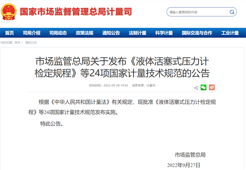 近日,市場監(jiān)管總局發(fā)布公告,批準(zhǔn)了《液體活塞式壓力計(jì)檢定規(guī)程》等24項(xiàng)國家計(jì)量技術(shù)規(guī)范發(fā)布實(shí)施。具體公告如下:分享、收藏、點(diǎn)贊、在看安排一下?...